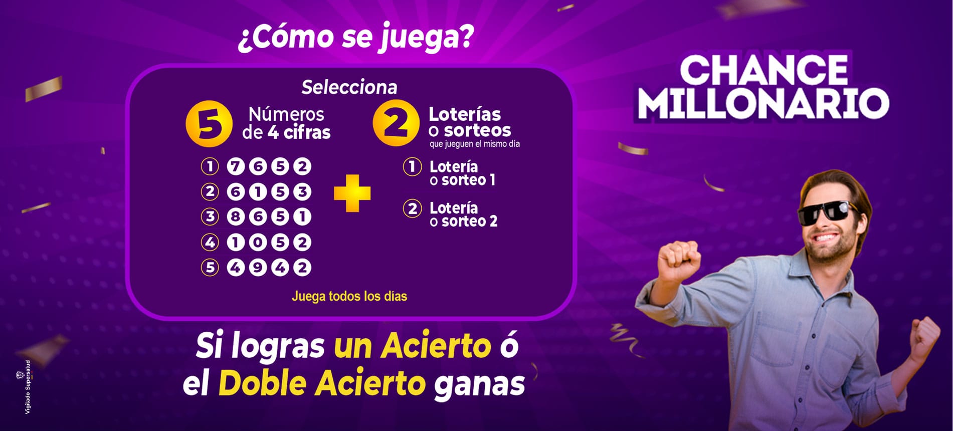 Consiste en acertar el resultado de una lotería o sorteo dependiendo de la modalidad. Las modalidades pueden ser de una, dos, tres, cuatro o cinco cifras. El Chance, además de ser fácil de jugar y de ganar, es altamente confiable y transparente por su dinámica sistematizada.