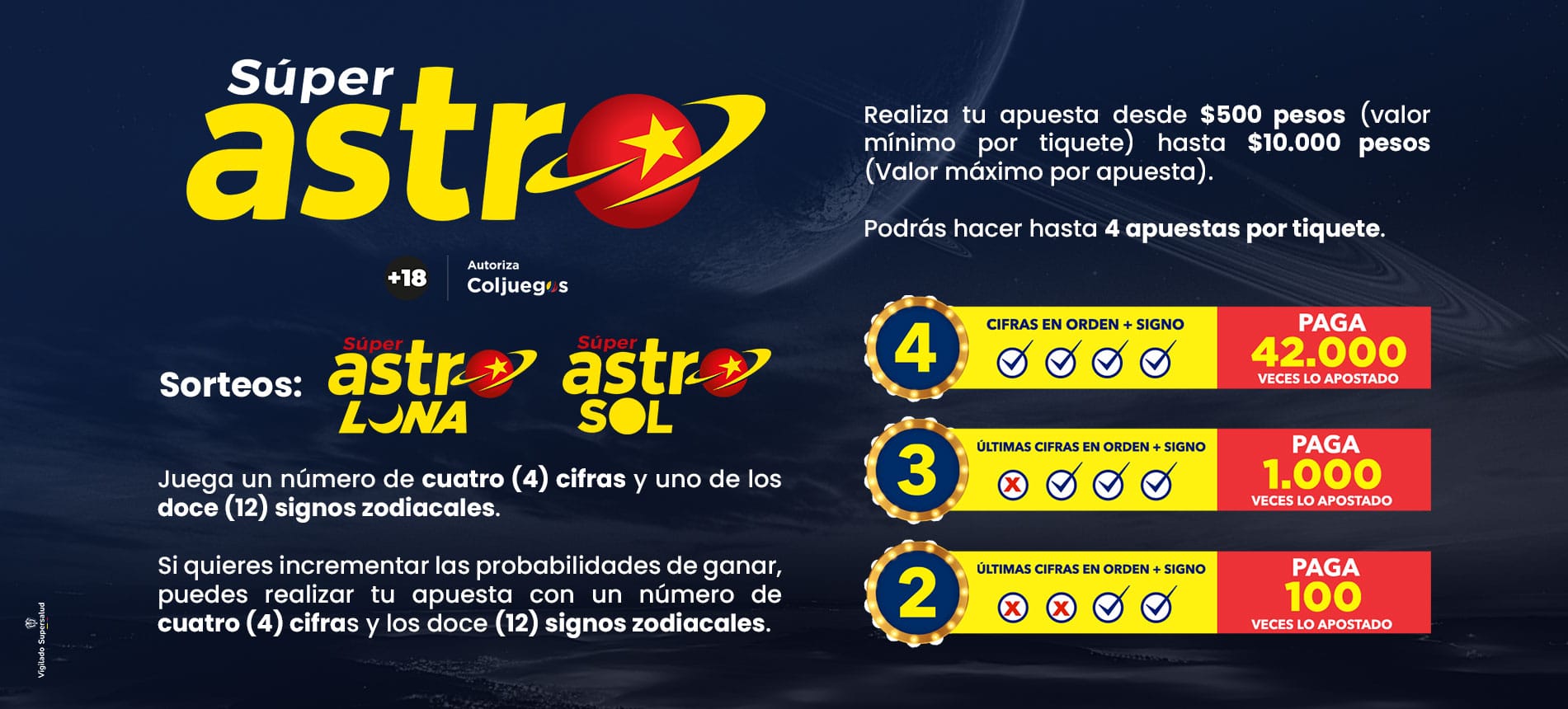 * En San Andrés y providencia el precio de la apuesta es de $3.362 (Exento de IVA)
